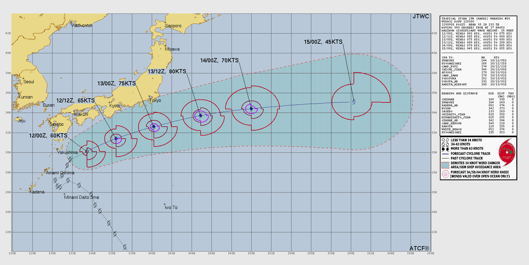 012 hrs: 31.4°N 136.4°E – 70 kts
