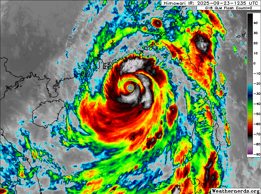Extremely dangerous Category 4 Ragasa to pass just south of Hong Kong and Macau overnight tonight into tomorrow.