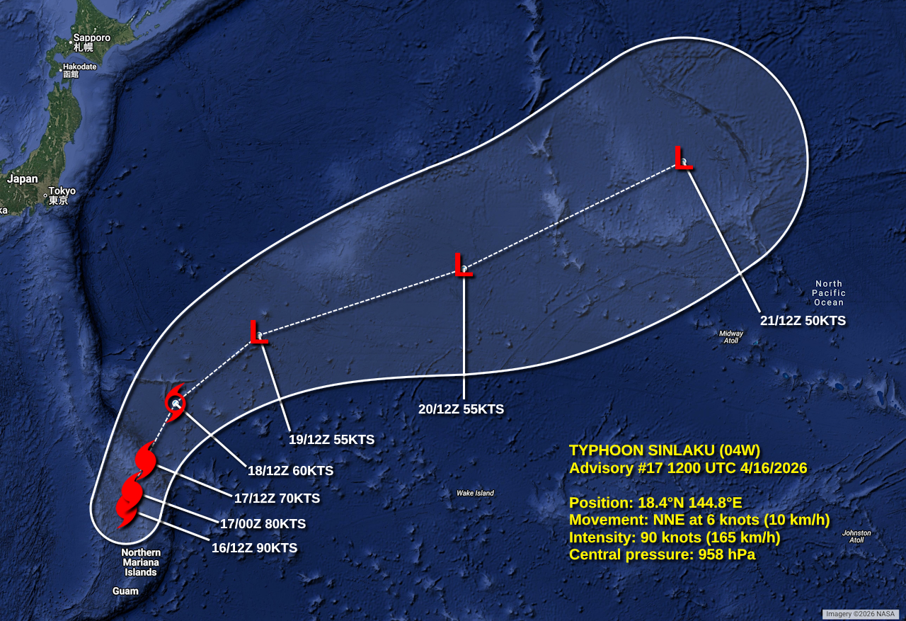 - Typhoon Sinlaku (04W) – Tropical Cyclone Advisory #17: 1200 UTC 16 April 2026